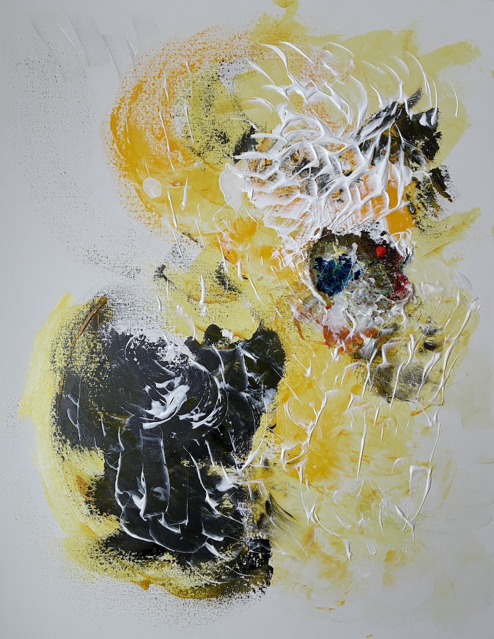 Le changement est le vecteur du mouvement, la suite de la mouvance. Les oeuvres de la collection «Changement», créée depuis 2025, sont le résultat des couleurs et des mouvements du changement de paradigme qui s’installe en moi depuis peu. Le jaune prédomine ainsi que les mouvements plus instinctifs et fluides de cette couleur intemporelle.